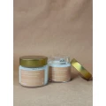 Embalagem de vidro com tampa de metal, 140g de produto.
